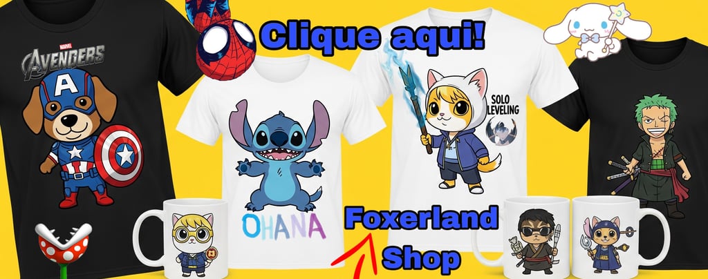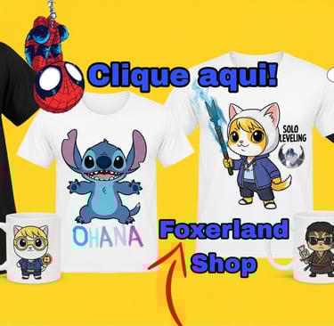O universo geek é cheio de histórias, cultura pop e referências nerd incríveis. Na Foxerland Shop, a gente ama tudo isso e por isso nos dedicamos a criar as melhores estampas inspiradas em todas essas histórias. Se você também é fã de animes como Naruto, Solo Leveling, Dragon Ball, Disney, Pixar, Marvel, e muito mais, dá uma olhada na nossa loja online: www.foxerlandshop.com. Temos camisetas, bonés e até roupinhas para pets com as estampas mais iradas para você e seu companheiro mostrarem todo o seu orgulho nerd! Corre lá e encontre a peça perfeita para o seu estilo!
