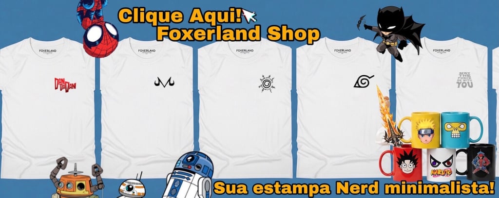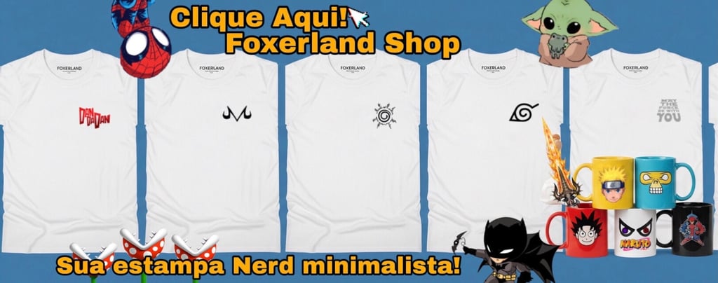 O universo geek é cheio de histórias, cultura pop e referências nerd incríveis. Na Foxerland Shop, a gente ama tudo isso e por isso nos dedicamos a criar as melhores estampas inspiradas em todas essas histórias. Se você também é fã de animes como Naruto, Solo Leveling, Dragon Ball, Disney, Pixar, Marvel, e muito mais, dá uma olhada na nossa loja online: www.foxerlandshop.com. Temos camisetas, bonés e até roupinhas para pets com as estampas mais iradas para você e seu companheiro mostrarem todo o seu orgulho nerd! Corre lá e encontre a peça perfeita para o seu estilo!